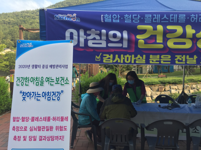 [사천=쿠키뉴스] 강연만 기자 = 경남 사천시(시장 송도근) 보건소가 혈압과 혈당 인지율 향상과 심뇌혈관질환을 예방하기 위해 시민이 많이 모이는 공원과 운동장 등 다중이용시설과 소규모 사업장을 방문해 기초 건강검진을 제공하는 '찾아가는 아침건강'을 운영 중이다.