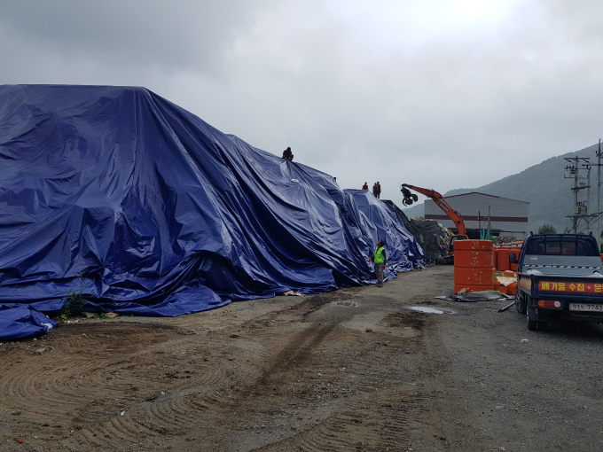 이에 따라 고성군은 방치폐기물의 처리업체 2개소를 선정하고 폐기물처리와 함께 우선 야적 폐기물 덮개를 금주중으로 설치완료 할 계획이다.