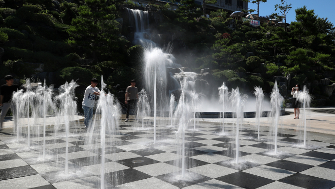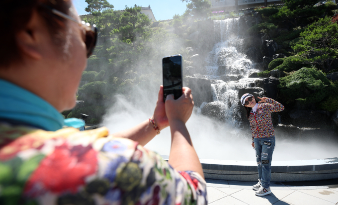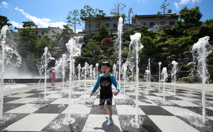 동의보감촌 입구인 불로문 앞에는 인공폭포와 분수대가 조성돼 여름철 산청을 찾는 관광객들에게 시원한 쉼터가 되고 있다.