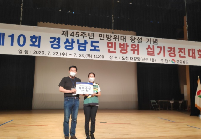 각 분야별 종합우승·최우수는 제45회 민방위대 창설기념행사 시도지사 상장을 수여받고 분야별 최우수팀과 우수팀은 오는 10월 초 재경연을 통해 선발된 한 팀이 전국 시도 경진대회 경남 대표로 출전하게 된다.