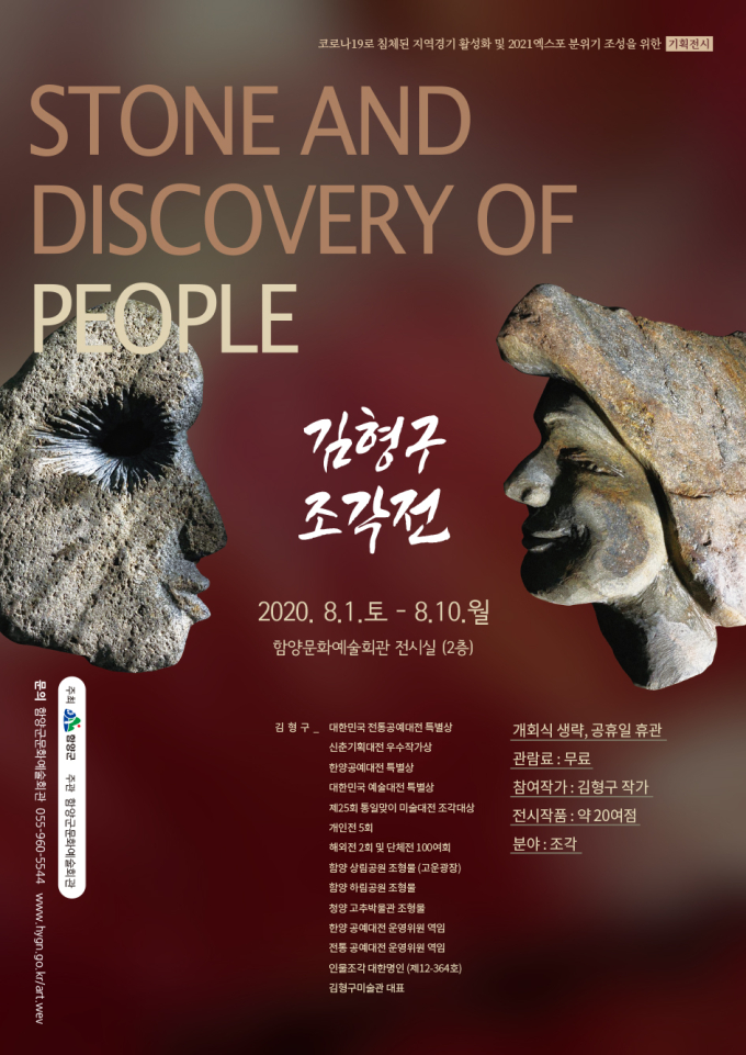 이번 김형구 작가 조각전에서는 그가 십 수 년 간 작업한 돌 조각품들이 전시된다. 매주 일요일은 휴관일이며 기타 자세한 사항은 함양군문화예술회관으로 문의하면 된다.