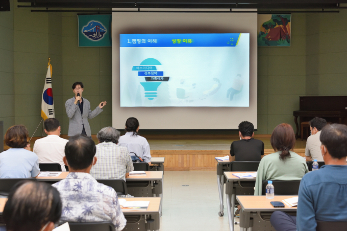 이날 교육은 코로나19 영향으로 최근 군내 야영장에 캠핑객들이 증가함에 따라 야영장 운영자들에게 관련 법규를 안내하고 원활한 관광객 대응책을 추진하기 위해 마련됐다.