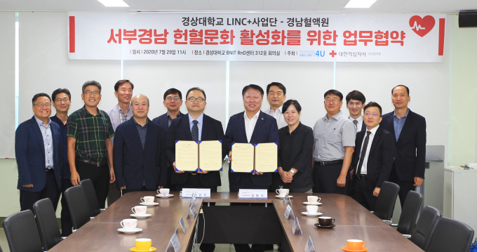 강상수 경상대 LINC+사업단장은 "이번 업무 협약과 헌혈스위치 공모전을 통해 헌혈에 대한 서부경남 지역민의 인식을 개선하고 헌혈을 장려하는 등 헌혈 문화 개선에 앞장서 나갈 것"이라고 말했다.