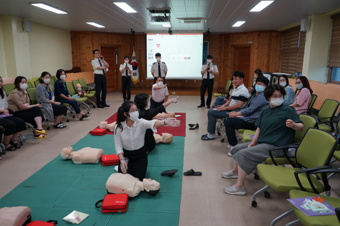 이어 강천섭 소방경의 가족을 살리는 아름다운 마지막 심폐소생술(CPR) 합창은 2시간에 걸쳐 실습 형태로 진행돼 응급상황 발생 시 당황하지 않고 즉각 대처할 수 있는 실전대응 능력을 정확히 체화하는 기회를 마련했다.