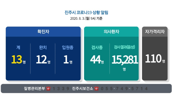 시 관계자는 "확인된 모든 동선에서 확진자와 접촉자는 마스크를 잘 착용하고 있었다"며 "진주시에서 확진자의 이동수단은 모두 보건소 음압 구급차며 다녀간 장소는 진주역과 안심숙소와 자가격리 장소 이외에는 없다"고 밝혔다.