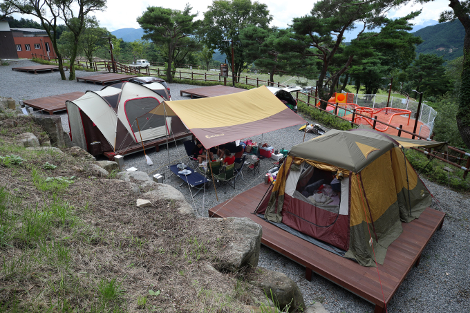 산청 황매산 미리내파크는 차황면 법평리 산1-27번지 일원 9100㎡ 부지에 일반야영장(15면)과 자동차야영장(18면), 샤워실과 화장실, 취사장, 주무대 등을 갖췄다.