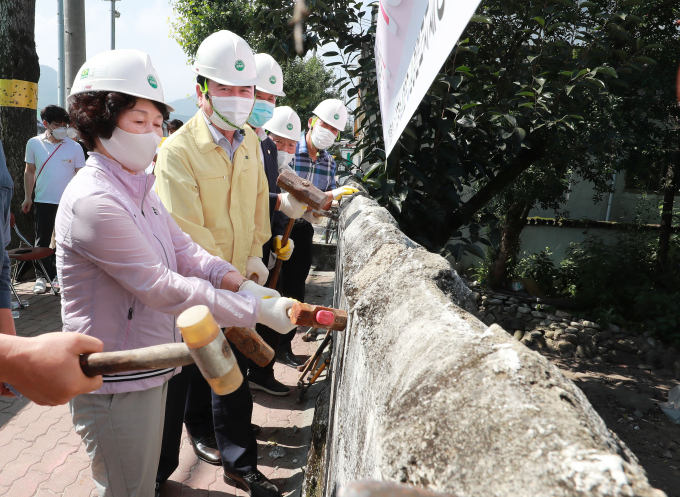 서춘수 군수는 "용평리 도시재생뉴딜 집수리 지원사업은 숲에그린(Green)이라는 마을의 콘셉트처럼 따뜻하고 밝은 느낌을 잘 살릴 수 있도록 편안함을 가진 디자인을 구축해 사람이 먼저인 함양다운 집수리 지원사업을 진행해 달라"고 전했다.