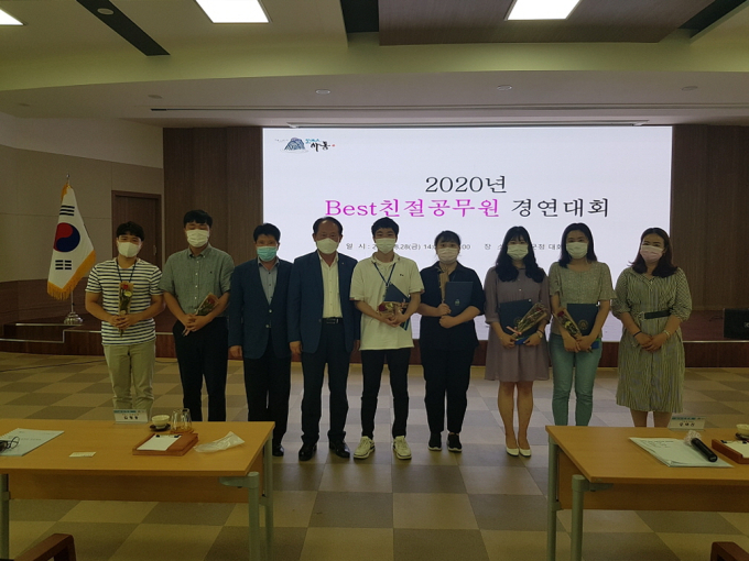 경연대회 결과 '친절 마무리 투수'를 주제로 발표한 옥종면 양승민 주무관이 최우수를 수상했으며 보건소 박아름 주무관이 우수상, 농업소득과 이재경 주무관과 건설교통과 김지솔 주무관이 장려상을 각각 수상했다.