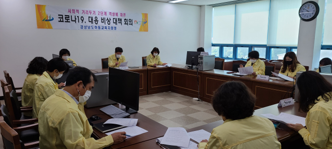 이번 대책 회의는 최근 코로나19의 재확산으로 사회적 거리두기 2단계 격상 및 인근 시·군에서 학생 전염 사례들이 이어지는 상황에서 다른 어떤 업무보다 학생들의 안전과 건강을 우선 시 해야한다는 신임 백운현 교육장의 요구로 개최됐다.