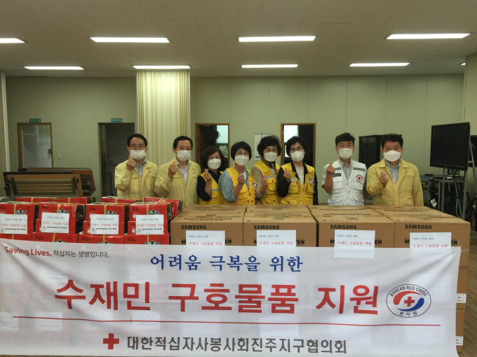 대한적십자봉사회 진주지구협의회는 추석을 앞두고 피해가구의 일상생활 복귀를 기원하기 위해 전자레인지, 냄비세트 등 500만원 상당의 구호물품을 전달했다.