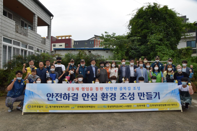 이번 '안전하길' 프로젝트는 경상대 LINC+사업단과 한국토지주택공사, 진주경찰서, 진주대학생연합봉사단 위더스, 평거동 행정복지센터, 진주여자중학교 등 관계자 60여 명이 참여하여 민·관·경·사·학이 함께 사업지 일대 골목길 환경을 개선하는 내용으로 추진된다.