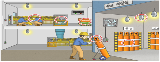 콘텐츠 이용자들은 그림 속 숨어있는 위험요소를 찾고 이에 대한 산업안전보건법(동 시행령, 규칙) 등 법적 근거와 안전수칙을 쉽게 이해할 수 있도록 안내 받음으로써 안전의식 향상은 물론 사고 예방을 위한 발전소 현장의 필수 안전수칙 등 기본적인 안전 준수 능력을 높일 수 있다.