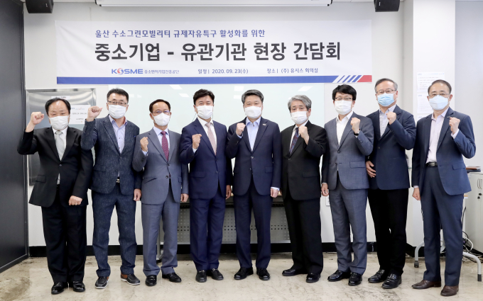 우선 중진공에서 울산지역의 산업동향과 수소그린모빌리티 규제자유특구 추진경과를 공유했다. 이어 기업 현장의 애로사항 및 규제자유특구 활성화를 위한 정책지원 방향에 대해 의견을 나눴다.