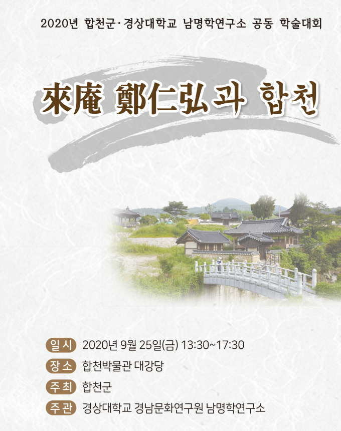 이번 학술대회는 경남문화연구원 남명학연구소가 합천군(군수 문준희)과 공동으로 개최하는 두 번째 행사로 지난해 합천이 낳은 대표 학자인 '남명 조식과 합천'을 조명한 데 이어, 올해 남명의 수제자이자 합천이 낳은 또 다른 선현인 내암 정인홍의 활동 전반에 대해 살펴본다.