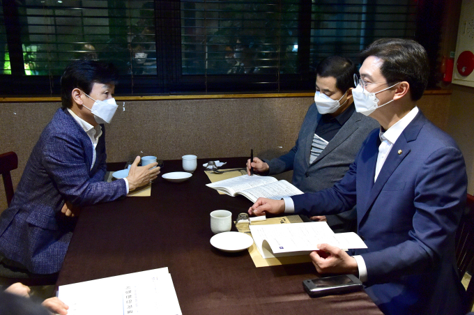 이날 간담회는 추석을 앞두고 조규일 시장이 지역 두 국회의원을 초청하면서 이루어졌으며 국토안전관리원(이하 국토원) 본사와 인재교육원의 진주유치 등 시정 주요 현안 설명과 협조를 위해 마련됐다.