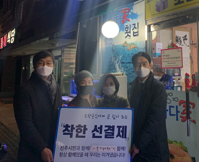 '착한 선결제 캠페인'은 코로나19 여파로 송년회 등 많은 행사들이 취소됨에 따라 위기에 처한 소상공인, 영세 자영업자들을 돕기 위해 평소 자주 이용하는 음식점, 동네 가게, 카페 등에 일정 금액을 선결제하고 재방문을 약속하는 운동이다.