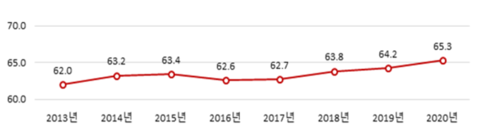 이번 정부가 출범한 2017년 건강보험 보장률은 62.7%였다. 이후 2018년 63.8% 2019년 64.2%, 2020년 65.3%로 상승하며 4년간 3.1%p가 올랐다.