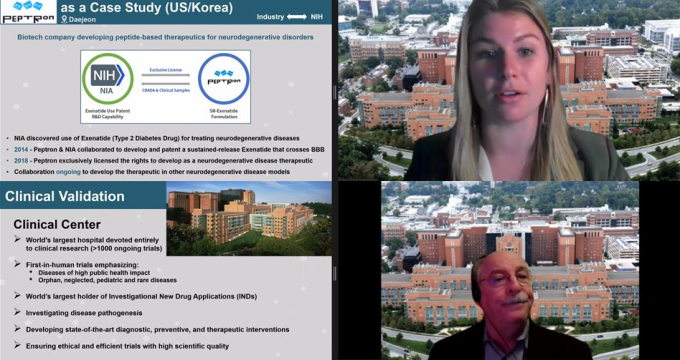 NIH의 파트너링 대상은 대학(42%), 기업(40%), 비영리기관·재단(11%), 정부(7%) 등이다. 지역별로 보면 캐나다와 미국 등 북미가 66%로 가장 많다. 이어서 유럽(21%), 아시아(12%) 순이다. 우리나라의 경우 펩트론을 포함해 총 135개 국내 기업 및 연구기관이 NIH와 파트너링을 맺고 있다. 샐겔러 총괄 감독은 아직까지 아시아 지역의 파트너링 비율 높지 않지만, 점차 확대할 계획이라고 밝혔다.