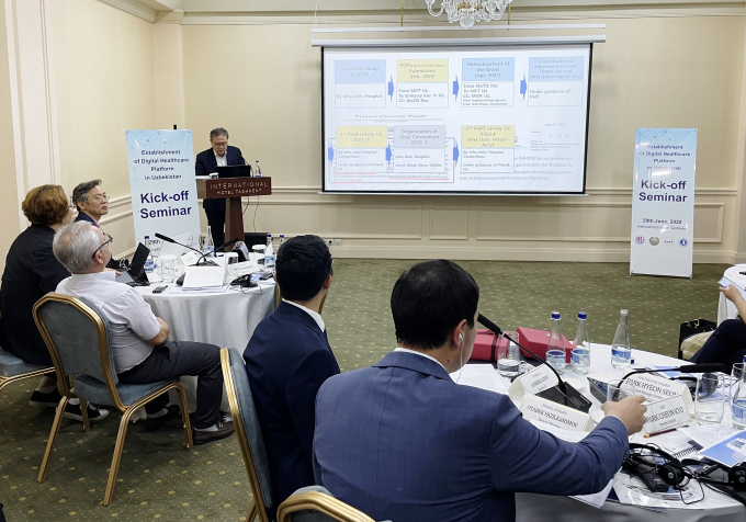 이날 열린 착수보고회에는 우즈베키스탄 보건부 차관 Fazilkarimov Otabek Rustamovich를 비롯해 우즈베키스탄 측 협력기관인 IT-MED LLC의 CEO Arthur Khakimov, KIAT 관계자 등 사업 관련자들이 참석했다.