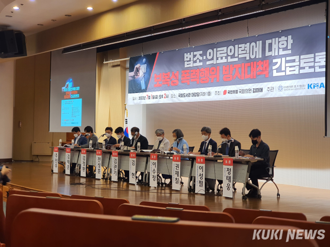 대한의사협회(의협)와 대한변호사협회(변협)는 1일 오후 2시 국회도서관 대강당에서 ‘법조, 의료인력에 대한 보복성 폭력행위 방지대책 긴급토론회’를 공동 주관했다. 국민의힘 김미애 의원 주최다.