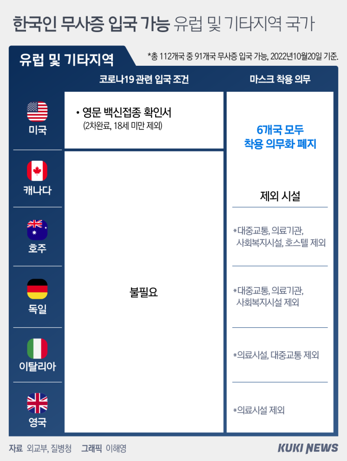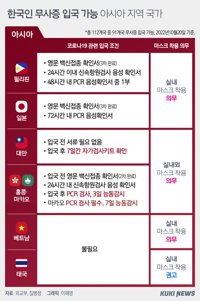 이에 쿠키뉴스는 외교부, 질병관리청 최근 발표를 토대로 각국 입국 조건 및 마스크 착용 의무화 유무를 정리해봤다.