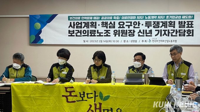 전국보건의료산업노동조합은 14일 서울 영등포 노조 사무실에서 신년 기자간담회를 열고 올해 핵심 요구안과 투쟁계획을 발표했다. 지난 9~10일 정기대의원대회에서 확정한 결과다.