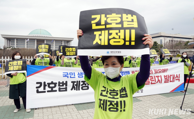 대한간호협회 등 간호법제정추진범국민운동본부는 27일 논평을 내고 “주호영 국민의힘 원내대표 발언에 개탄을 금치 못한다”면서 “국민의힘이 했던 약속을 스스로 부정하는 발언을 한 이유와 저의가 궁금하다”고 질타했다.