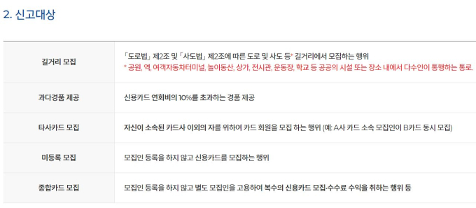 이후 금융당국 규제가 강화됐다. 카드모집인은 길거리 모집행위와 연회비 10%를 초과하는 경제적 이익 제공을 하면 안된다. 예를 들어 카드 연회비가 만원이면 고객에게 1000원이 넘는 경품도 줘선 안 된다는 얘기다. 카드모집인들은 보험설계사 등 타 직종에 비해 규제가 과해 생존권을 위협한다면서 지난 2013년과 2017년 두 차례 헌법소원을 내기도 했다.