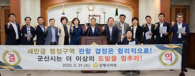 특히 시의회는 이날 최승선 의원이 대표발의한 ‘새만금 관할권 확보 다짐을 위한 결의문’을 만장일치로 채택하고, 새만금 지역은 3개 시군이 상생·발전할 수 있도록 대법원이 제시한 기준에 따라 합리적으로 결정할 것을 촉구했다.