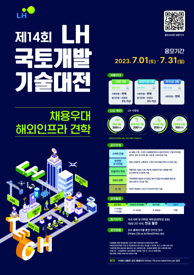 LH 국토개발기술대전은 국토·도시개발분야 미래 성장 동력을 발굴하기 위해 추진되는 공모전으로 2010년부터 매년 개최되고 있다.