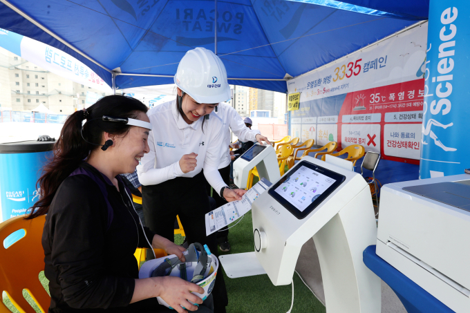 대우건설은 폭염주의보, 폭염경보 상황에 맞는 ‘건강한 여름나기 3355 캠페인’을 시행하고 있다. 온열질환 예방을 위해 물⋅그늘⋅휴식을 강조하고 폭염경보 시 옥외작업을 최소화하면서 작업자 본인과 동료들이 상시로 건강상태를 확인하고 있다.