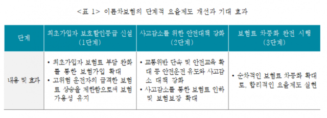 김 연구위원은 이에 대해 “이번 요율제도 개정으로 최초 가입자가 자신의 위험에 적합한 보험료를 부담하게 됨으로써 보험 가입이 증가할 것으로 기대된다”며 “단체 할인과 할증제도 시행으로 단체의 라이더에 대한 위험관리와 사고예방 노력도 강화될 것”이라고 설명했다.
