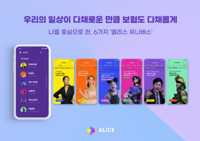 금융소비자들은 롯데손보가 만든 독특한 세계관인 '앨리스 유니버스' 안에서 보험 상품들을 찾을 수 있다. 앨리스 유니버스는 △FOR ME △FLEX △MY FAM △CREW △VILLAIN △HERO 로 구성됐다.