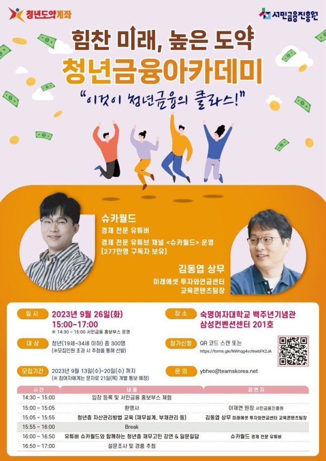김동운 기자 chobits3095@kukinews.com 26일 숙명여자대학교 백주년기념관에서 청년층 대상 재무관리 역량 강화를 위한 ‘청년금융아카데미’를 개최한다고 13일 밝혔다.