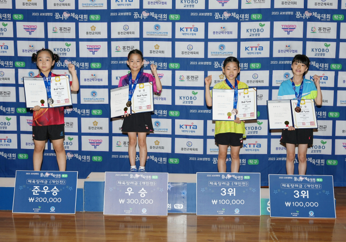 교보생명의 꾸준한 지원이 선수들의 성과로 이어지기도 했다. 이번 대회 탁구 개인전에서 탁월한 실력을 보여준 서울영남초등학교 3학년 우승 구서니 양, 4학년 준우승 박채은 양은 스포츠 용품 지원 등을 받아왔다.