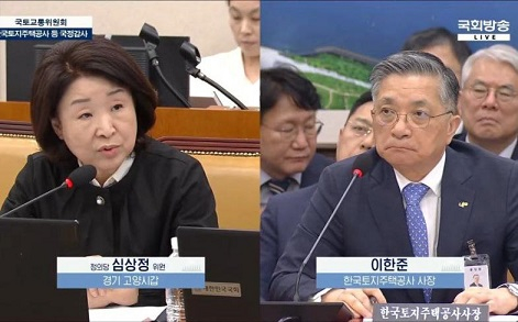 정의당 심상정 의원이 지난 16일 진행된 한국토지주택공사(이하 LH) 국정감사에서 검단아파트 주차장 붕괴사고를 “LH를 믿고 계약한 국민의 신임을 배신한 행위”라며 비판하며 이한준 사장에게 발본적 대책을 요구했다.