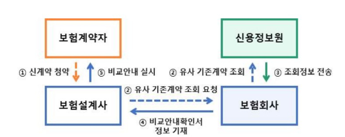 이에 금융당국은 신용정보원에 다른 보험회사 계약정보 조회도 가능한 ‘비교안내시스템’을 구축해 보험모집자가 새로운 계약 청약 시 신용정보원에 집중된 계약정보를 조회해 비교안내에 활용이 가능할 것으로 본다. 신용정보원과 보험회사들은 비교안내시스템을 오는 12월 말까지 구축해 서비스를 개시할 계획이다.