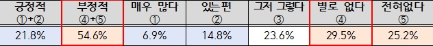 더불어민주당 허종식 의원이 여론조사 전문기관인 ㈜리서치DNA에 의뢰해 지난 24~25일 이틀간 전국 만 18세 이상 성인 남녀 800명을 대상으로 ‘부실시공 등 국토교통부 정책 관련 여론조사 결과’를 한 결과, LH 아파트에 입주 의향이 있는지 물어보는 방식으로 LH 아파트 신뢰도에 대해 묻는 질문에 ‘부정평가’ 응답이 54.6%로 ‘긍정평가’ 21.8%보다 32.8%p 더 높게 나타났다.