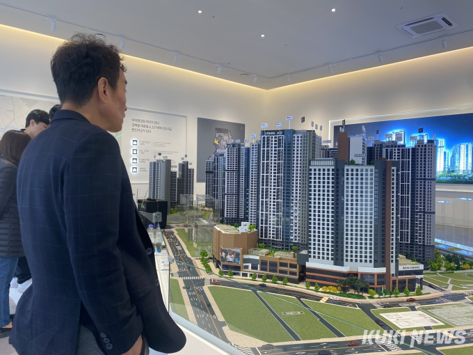 이문아이파크자이는 평형은 △20㎡ △41㎡ △59㎡ △84㎡ △99㎡ △102㎡로 구분된다. 견본주택을 보고 왔다. 현장에 마련된 타입은 59㎡A와 84㎡B다. 59㎡A형(25평)은 맞통풍이 가능한 판상구조다. 개방감은 덜하다. 냉장고 수납장이 커서인지 더 좁게 느껴진다. 견본주택을 둘러본 노부부는 “확장을 안 하면 방이 3개가 나올 수 없다”라며 “욕실도 작은데, 자녀 없는 집이 살기 좋겠다”고 말했다.