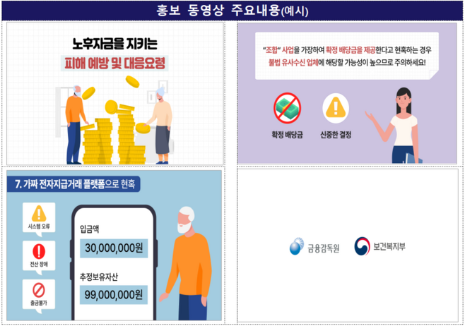 금감원은 강화된 캠페인을 통해 전국 경로당·복지관 등을 이용하는 최대 480만명의 어르신들께 불법사금융·보이스피싱 피해 예방에 대한 경각심이 제고될 것을 기대하고 있다.