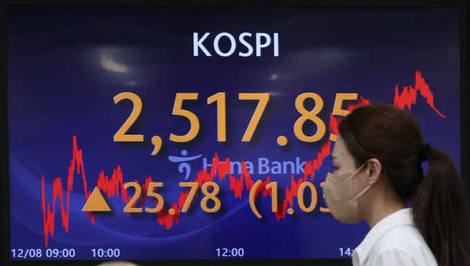 9일 한국거래소에 따르면 직전 거래일인 8일 코스피는 전 거래일 대비 1.03%(25.78p) 오른 2517.85에 장을 마감했다. 약 한 달 전인 지난 11월8일 2421.62로 마친 이후 3.97% 증가했다. 그러나 큰 오름세를 나타내지 못한 채 2500선 부근 안팎에서 움직이는 등 박스권 흐름을 이어가고 있다.