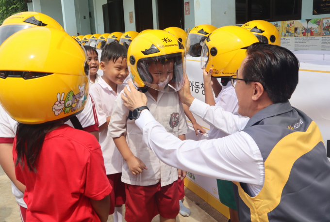KB손해보험은 지난 16일, 인도네시아 자카르타 남부 지역에 위치한 Sinar Cahaya Kasih 학교에서 KB손해보험 조정래 인니법인장과 학생 240명이 참석한 가운데 인도네시아의 안전한 이륜차 교통환경 조성을 위한 ‘안전모 전달식’을 진행했다. KB손해보험은 이번 전달식에 참여한 학생 240명을 포함한 인도네시아 취약계층 아동·청소년에게 총 1000개의 이륜차 안전모를 전달할 예정이다.