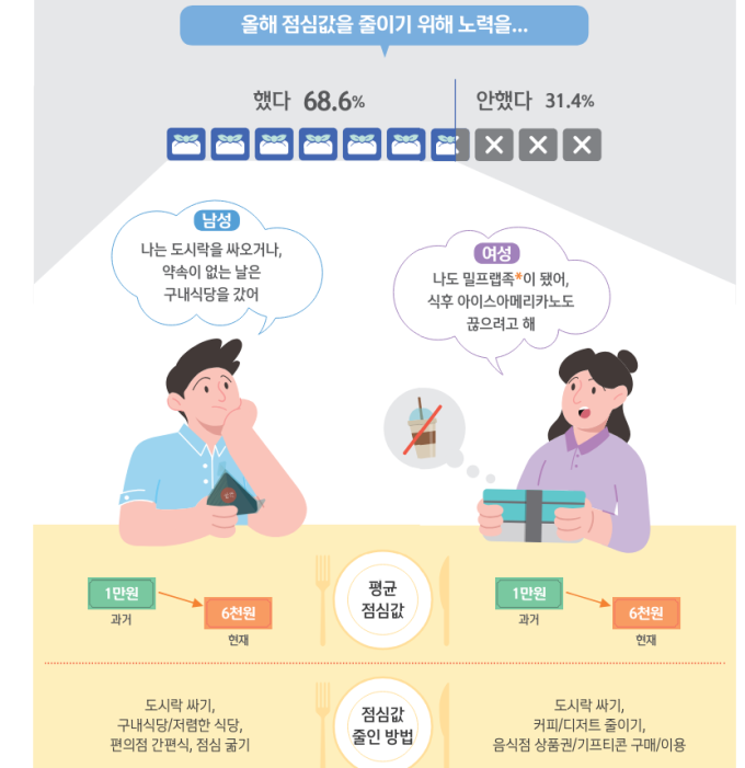 1만원 넘는 점심값…男 “구내식당 이용”·女 “식후 소비 줄여”