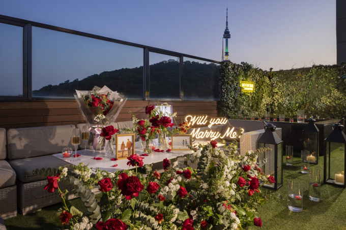 20층 야외 테라스에서 진행되는 ‘로맨틱 테라스 프러포즈’는 해질녘 펼쳐지는 남산의 노을 아래 이색적인 프러포즈를 계획하기에 좋다. 야외 테라스 이용 시 자쿠지 및 개인 샤워 시설이 마련되어 있어 따뜻한 온수풀에서 특별하고 프라이빗한 둘만의 시간까지 함께 즐길 수 있는 것도 장점이다.