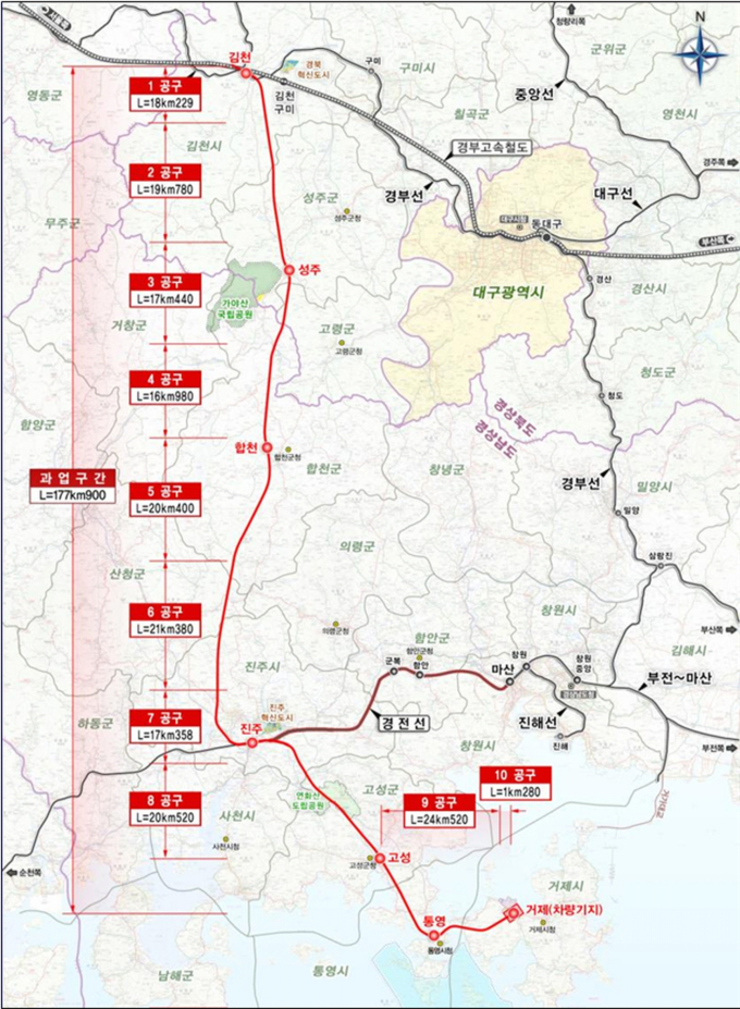 사업계획 적정성 재검토에는 △열차 운행횟수 증대를 감안한 신호장 추가 △도로 및 하천계획을 고려한 교량계획 조정 △터널 굴착공법 안전성 보강 △역사 건축 면적(합천, 진주, 고성, 통영, 거제) 증대 △자연환경 훼손 최소화를 위한 보강공법 적용 △지역별 환경, 민원해소를 위한 철도시설 마련 등이 반영돼 기본계획 총사업비 4조9438억 원에서 6조6460억 원으로 약 1조7000억 원이 증액됐다.