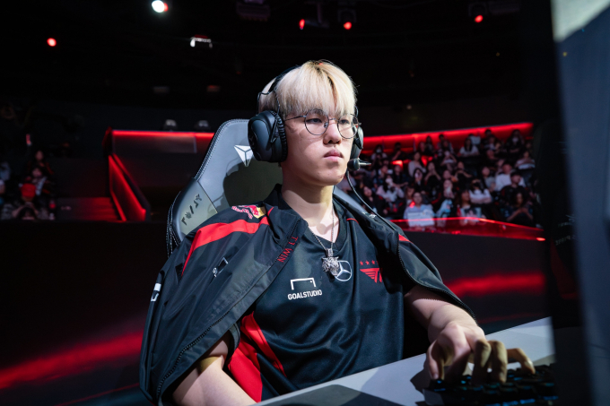 1세트 T1은 레드 진영에서 럼블-세주아니-코르키-애쉬-레나타 글라스트로 조합을 구성했다. 디플러스 기아는 아트록스-니달리-트리스타나-제리-레오나로 맞받아쳤다.