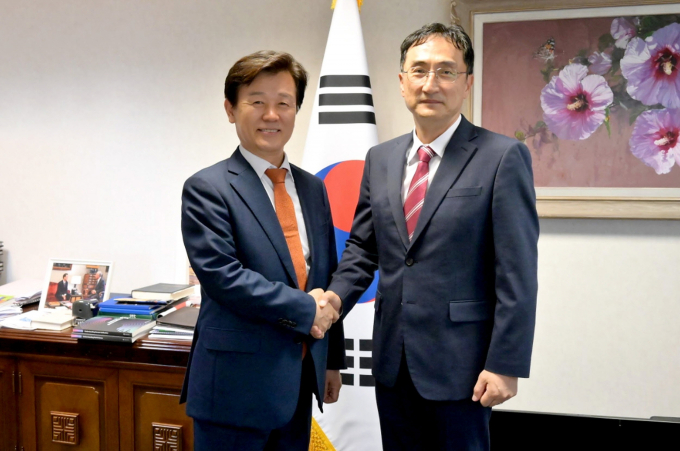 조규일 진주시장이 지난 2일(현지시간) 포르투갈 리스본에 있는 주 포르투갈 대한민국 대사관을 방문해 조영무 대사와 간담회를 개최했다.