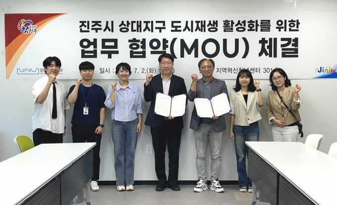 경남 진주시 도시재생지원센터와 경상국립대 위칠드런국제문화센터는 지난 2일 진주시 상대지구 도시재생사업의 일환으로 다문화 특화자원 도출 및 다문화 크리에이터 양성을 위한 인적 네트워크 교류를 위한 업무협약(MOU)을 체결했다.
