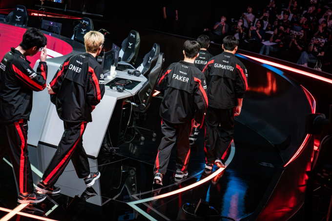 T1은 5일(한국시간) 오전 0시 사우디아라비아 리야드 키디야 아레나에서 열린 EWC 롤 8강 LPL BLG와 경기에서 2세트를 패하며 세트스코어 1-1 동점을 허용했다. 양 팀은 마지막 세트인 3세트에서 승부를 가린다.