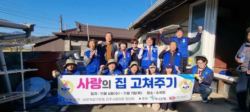 이번 봉사활동에 케이디(회장 백성용)와 하나은행 진주중앙지점(지점장 주용)이 후원했으며, 청년회 서윤정 부회장이 한돈 선물 세트를 선물하는 한편, 청년회원들과 함께 수곡면위원회, 수곡면장 외 직원이 참여했다.
